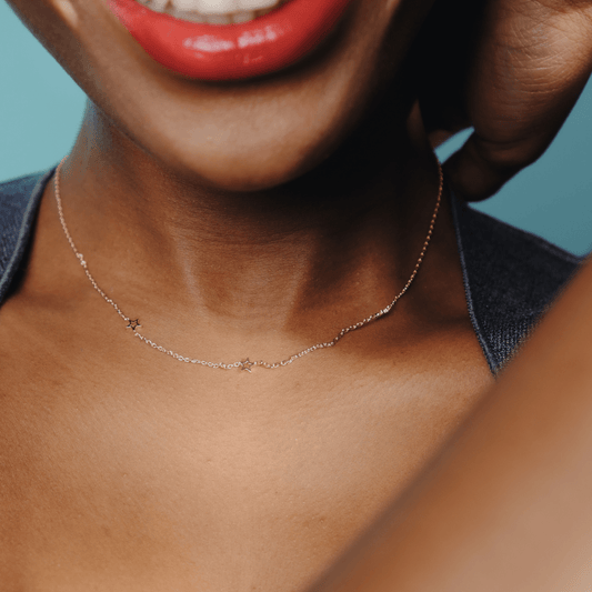 Designed in-house with care, each piece blends simplicity with meaning, whether it’s a delicate single star pendant or a constellation of stars strung across one of our signature chains.