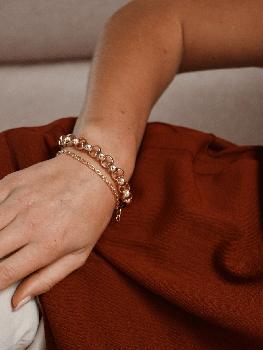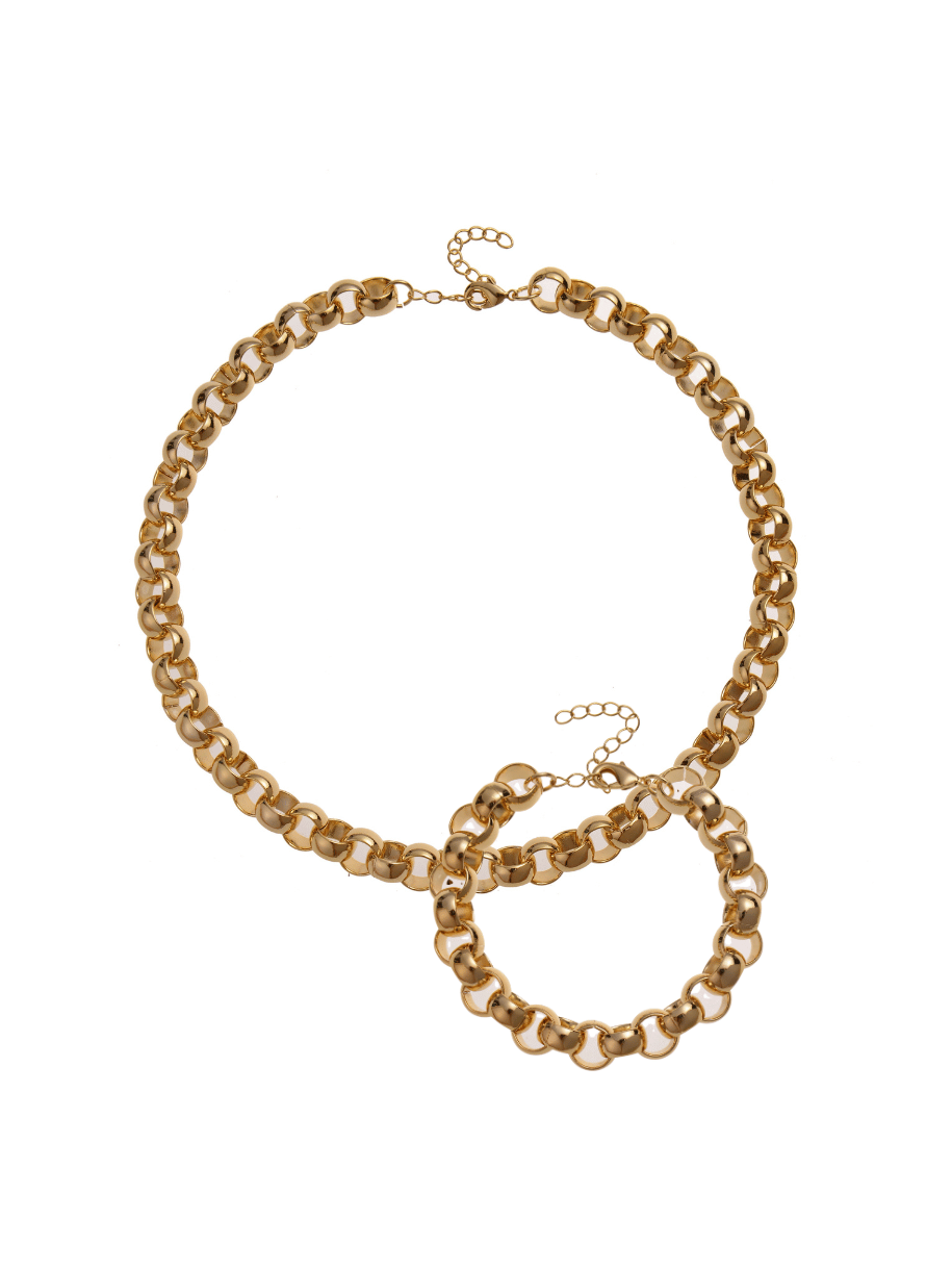 The Rolo matching set from Betty and Biddy. Bold circular curve links to elevate any necklace and wrist to impact. Stylish and versatile for day and night.