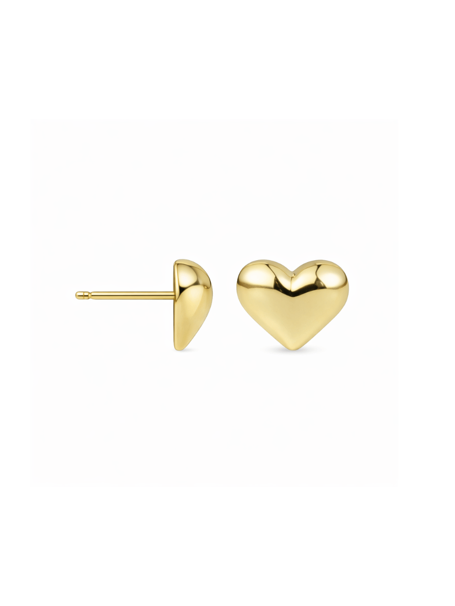 The Mini Block Heart Stud Earrings in Gold