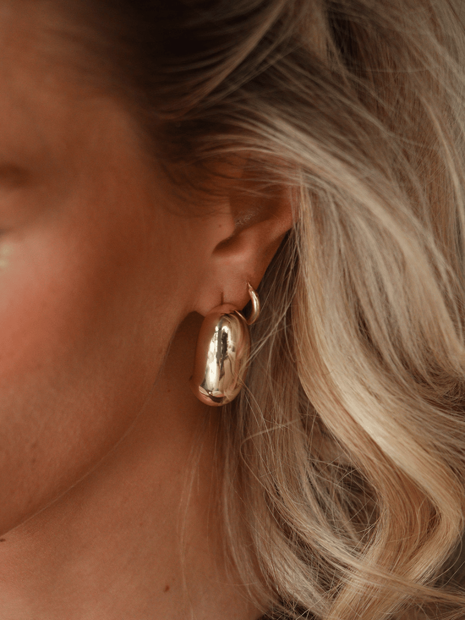Elevate your everyday elegance with the Bold Dome Gold Hoops. These sculptural earrings feature a sleek, high-polish finish and a modern domed silhouette that makes a bold yet refined statement.