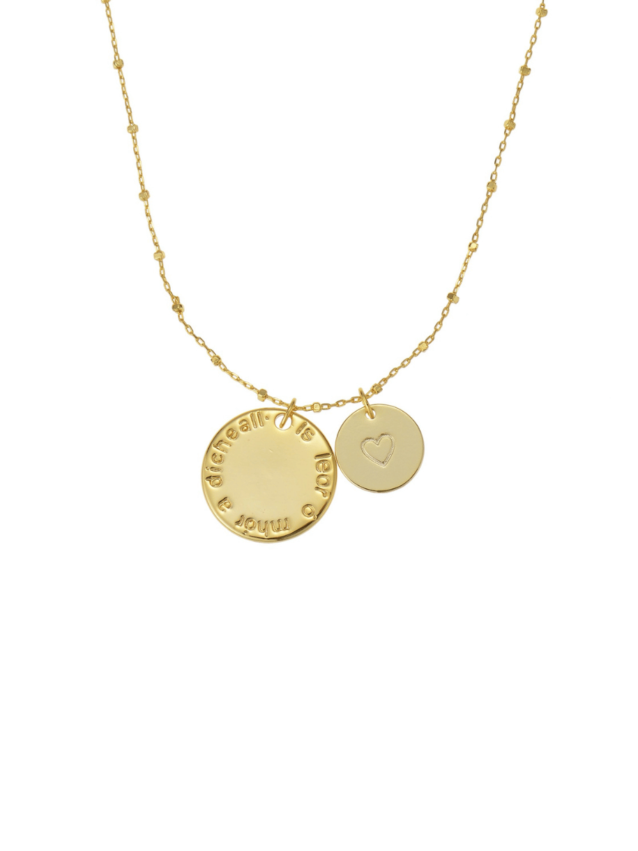 Betty and Biddy is an Irish brand who design the full Eire Collection in Ireland. This Irish quote necklace is engraved in an italic font set on a gold disc with a fine gold delicate chain.