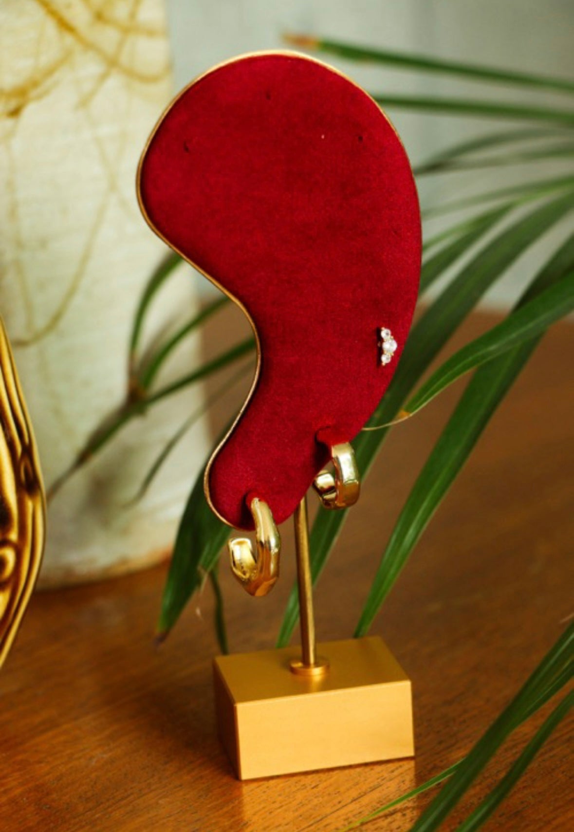 Gouden blokoorbellen met een vleugje detail in een gedurfde stijl. Gesmolten oorringen met een gehamerde textuur geven een klassieke mini-oorbel een subtiel randje.