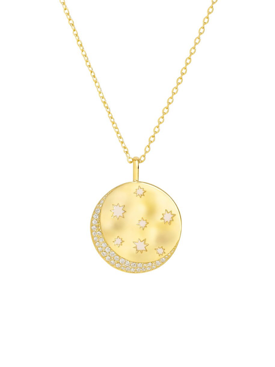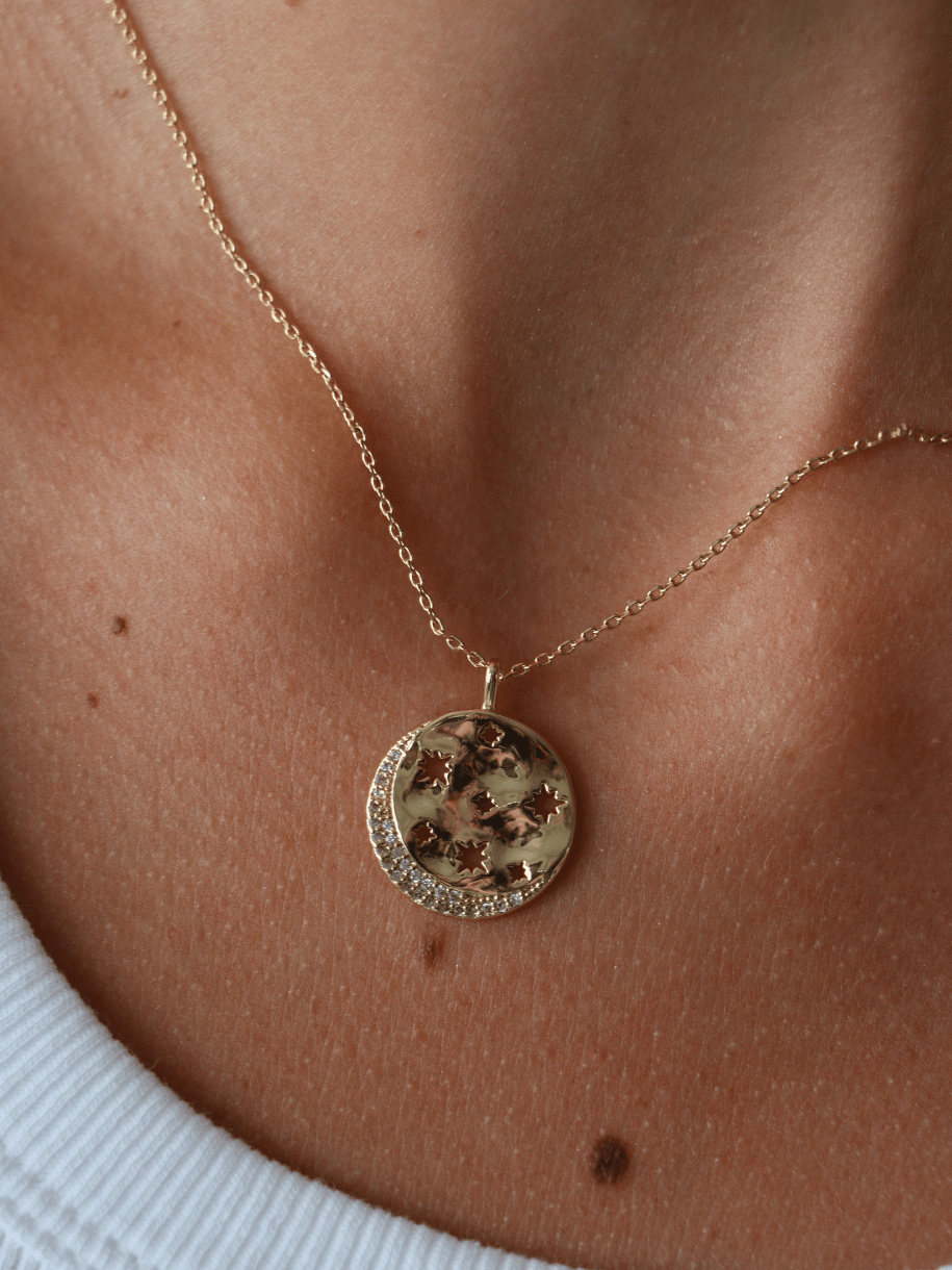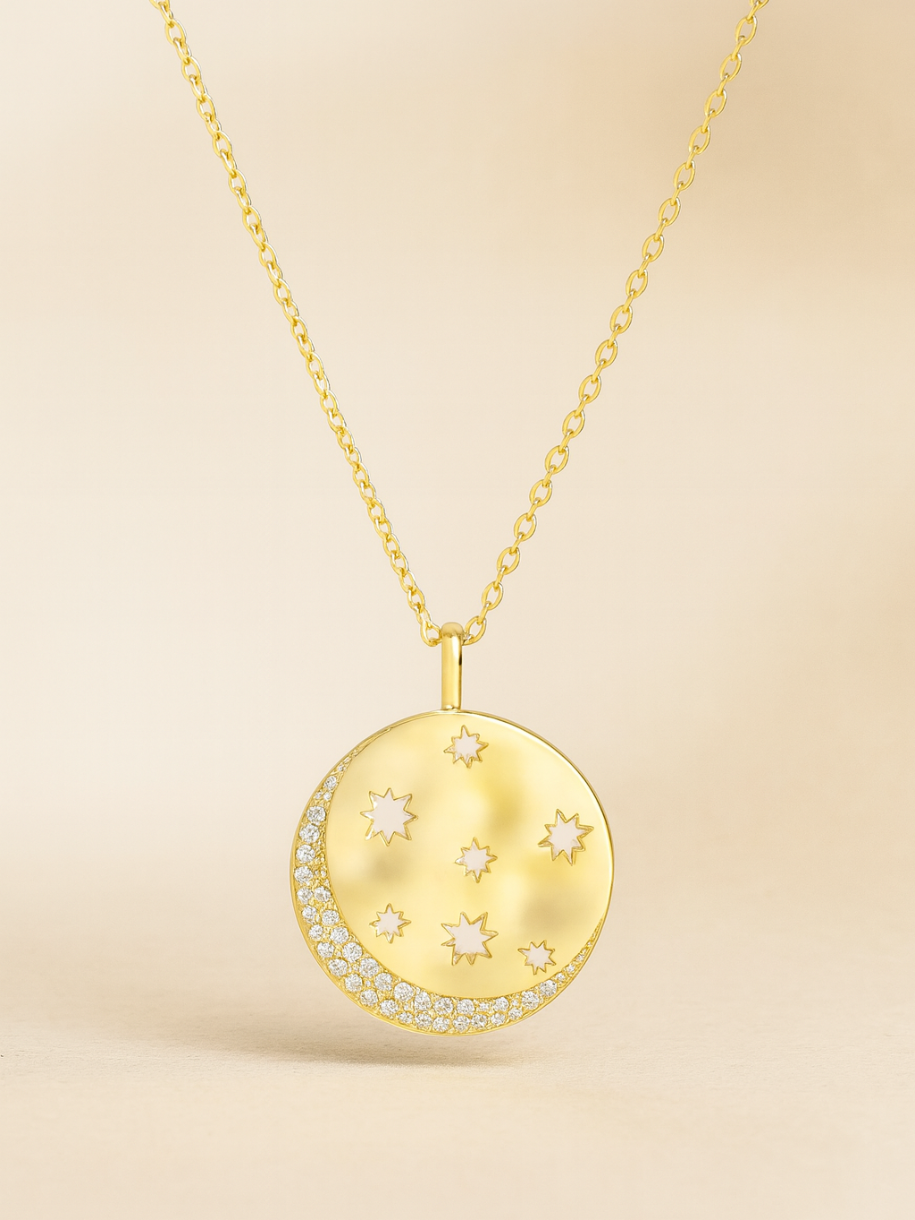 Een delicaat bedeltje in de vorm van een klein gouden schijfje.