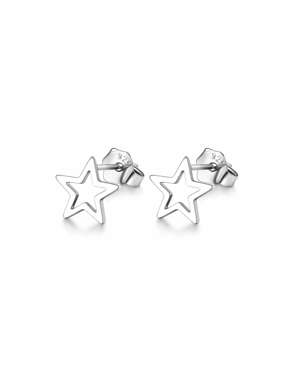 A delicate pair of silver open star studs for layering your ear. An star design made of sterling silver.