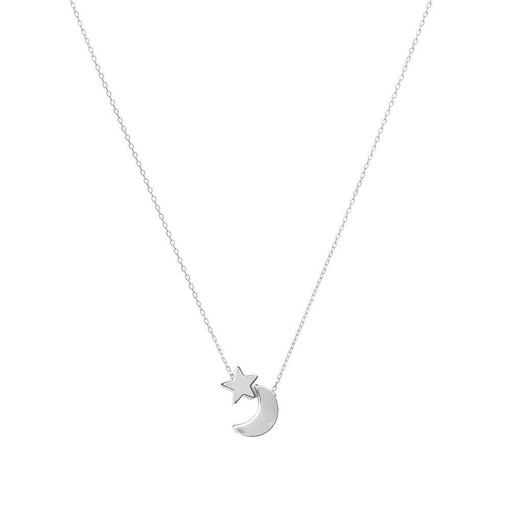 Silver Moon and Star Necklace