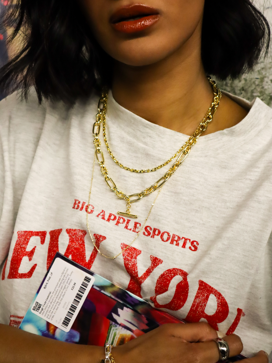 The T-bar link chain necklace from Betty and Biddy. A new edited twist on the classic t bar with detailed twisted links.